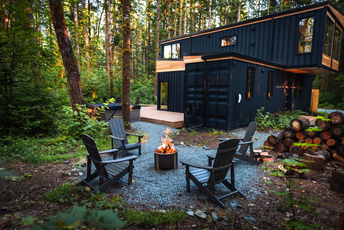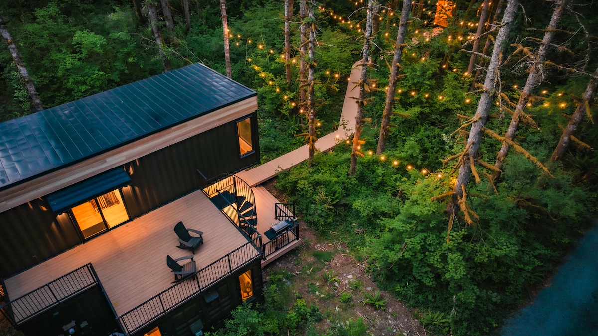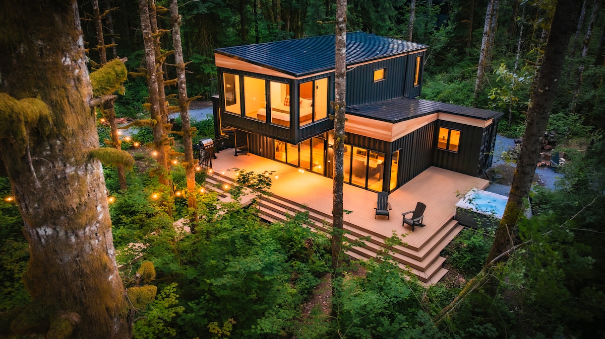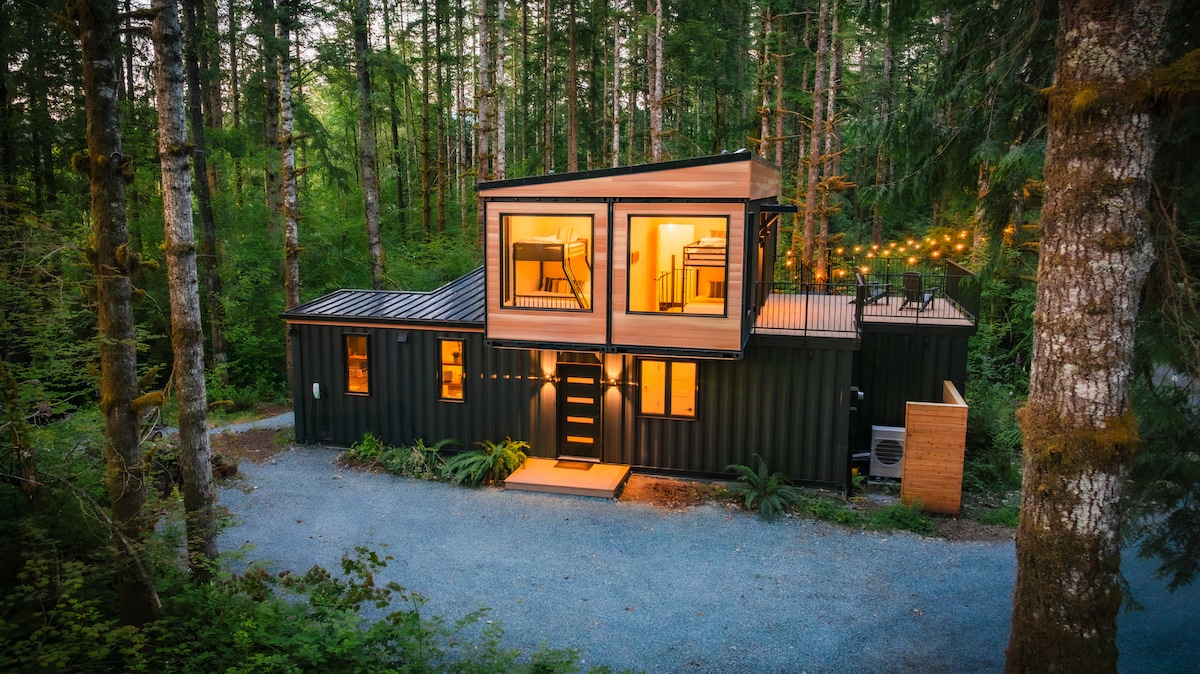 MonroeExperience the epitome of luxury living at the Pacific Bin, a unique vacation rental situated in the lush forests of the Cascade Mountains, just an hour from Seattle. Nestled in the heart of the Pacific Northwest, this impressive container home offers a prime location for world-class outdoor activities, including hiking, skiing, biking, and rafting.