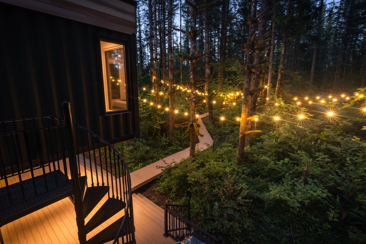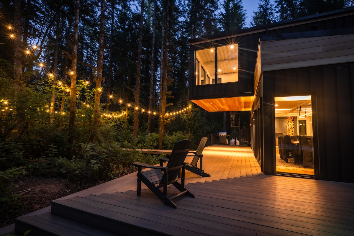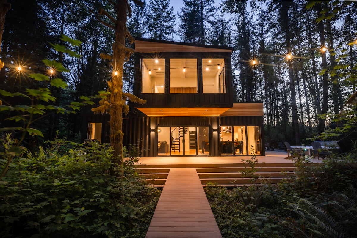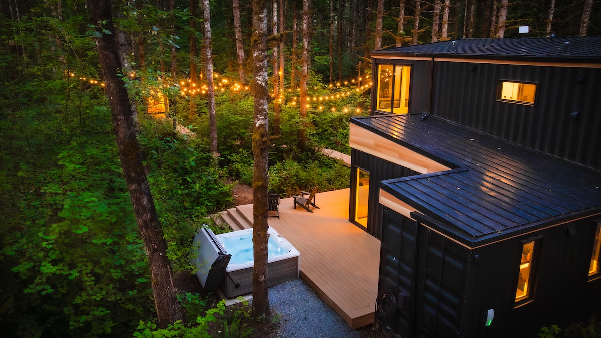 MonroeExperience the epitome of luxury living at the Pacific Bin, a unique vacation rental situated in the lush forests of the Cascade Mountains, just an hour from Seattle. Nestled in the heart of the Pacific Northwest, this impressive container home offers a prime location for world-class outdoor activities, including hiking, skiing, biking, and rafting.